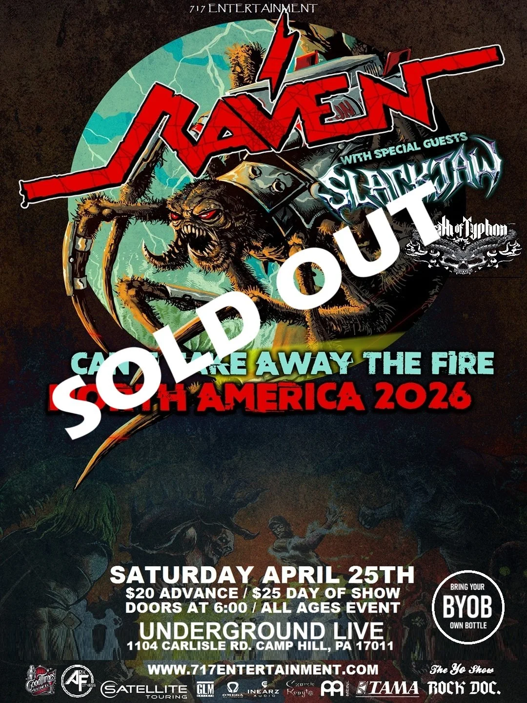 Legendary Thrash metal band Raven is coming to Underground Live in New Cumberland w/ Slackjaw. Dates on this tour are selling out and ours his close to it so don’t miss this event in what will be the final show at Underground Live under its current ownership.