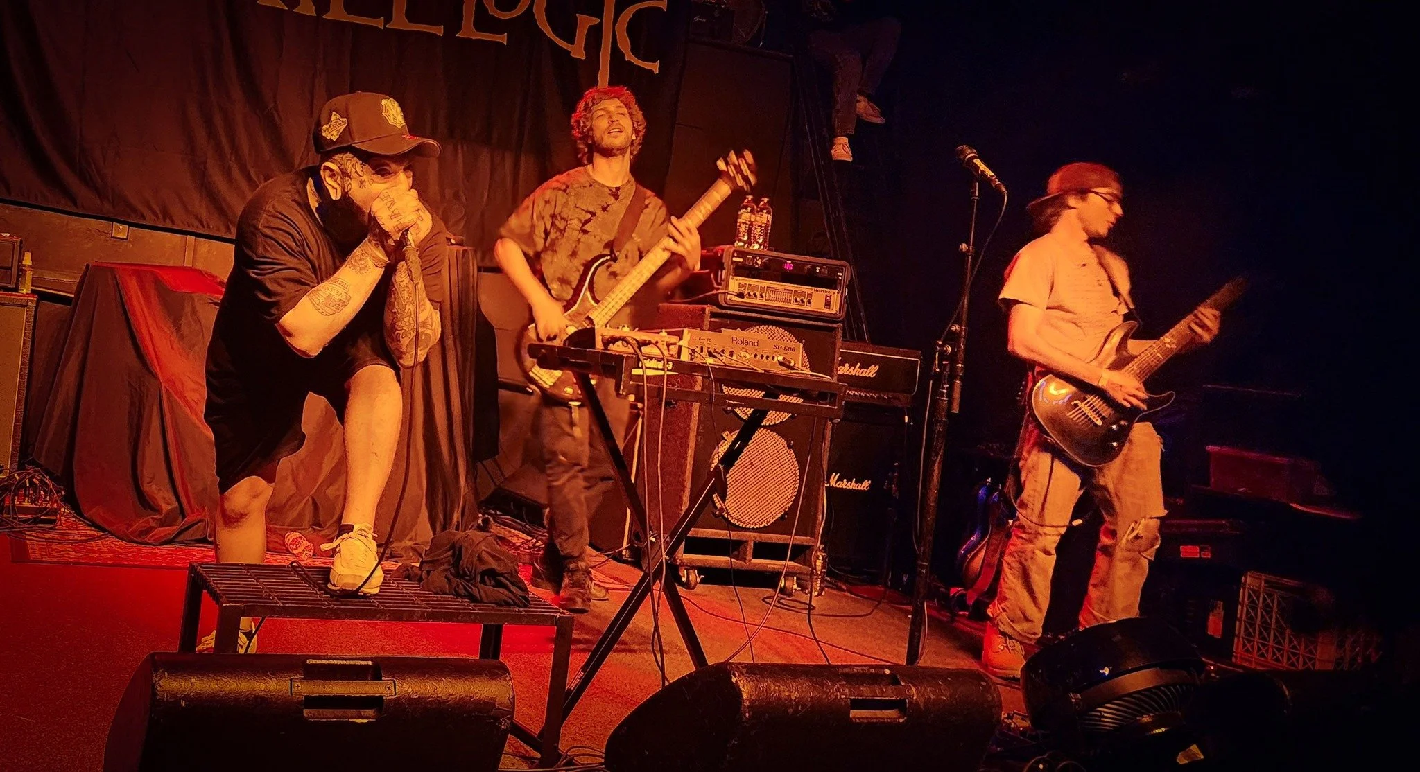 There is just no band like Blood & Earth. Sure there might be some similarities in sound w/ their groove type metal and screaming vocals but they stand out even in that sense. But their live show is the real strength. Vocalist Timmothy Lemmon doesn’t just show up and play, he screams parts w/out the mic, he also played the entire set on the floor. Not because the stage was to crowded, simply because he can and possibly feels more comfortable down with the people. The band surprise dropped a new 3 song ep just two weeks ago called “My End of Days”. During the set Drummer Alex one kick broke so he had to play w/ only one all night. The band didn’t panic, they adapted. Playing songs they could and still have the crowd moving.