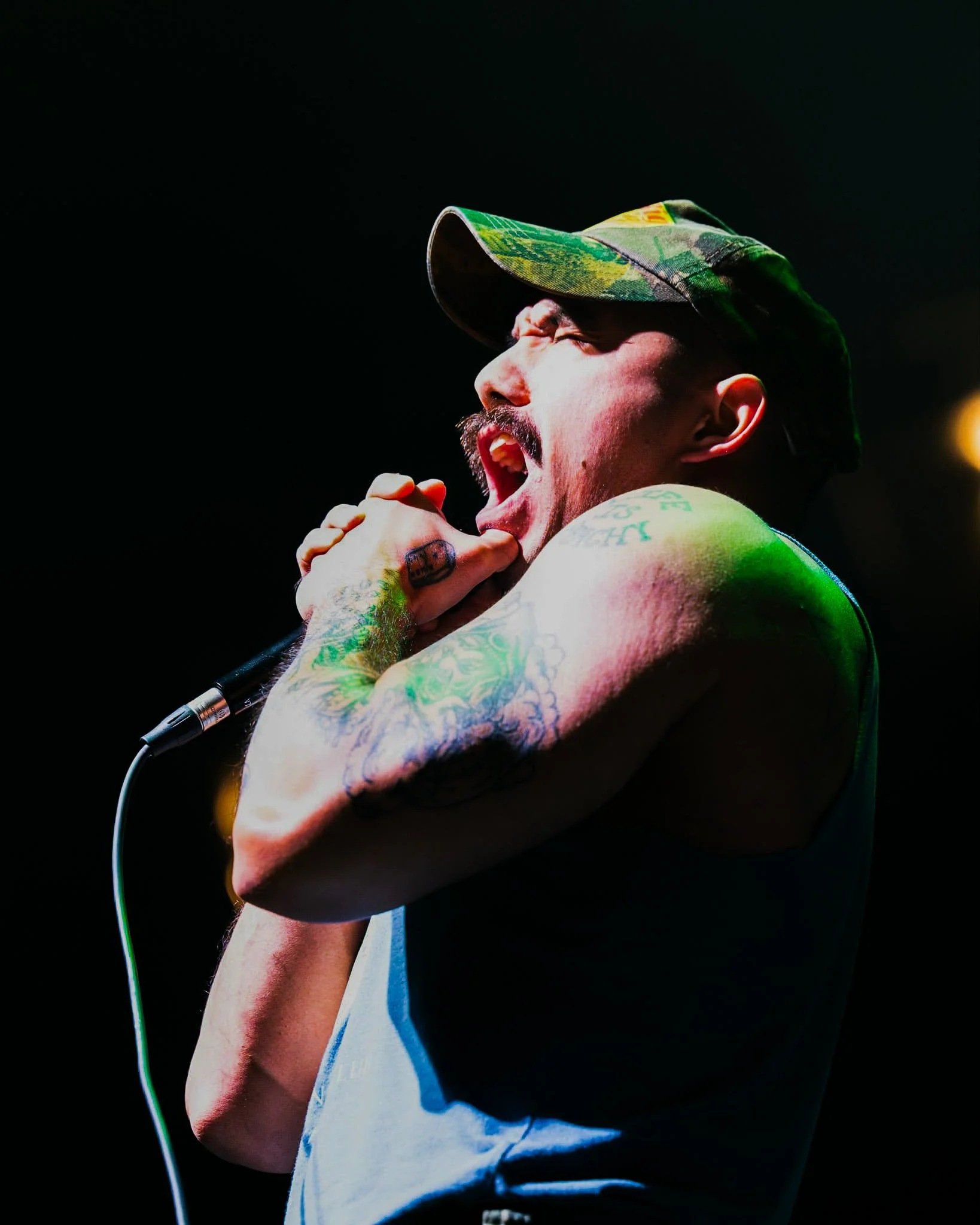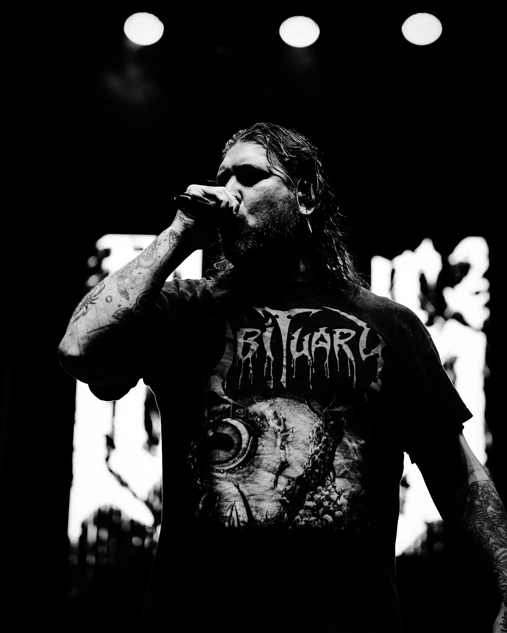 Second in the lineup was a band called Fit For An Autopsy, not any brighter of subject matter is it? So much death w/ these death metal type bands. Coming straight out of New Jersey the five piece band hits you directly upon the lights coming up. Boom no lead in straight into “Lower Purpose” a track from their most recent 2024 record “The Nothing That is”. They seemed to be a bit more human that our openers when speaking w/ the audience.