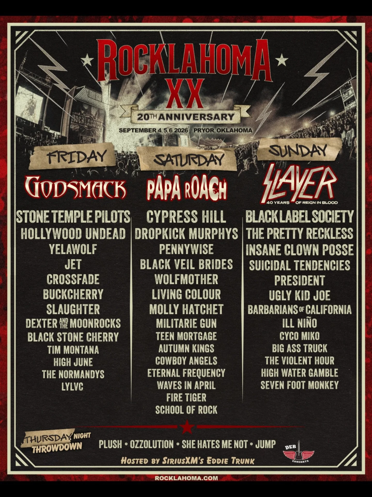 Rocklahoma is celebrating 20 years w/ its biggest lineup to date featuring a closing set by Metal legends Slayer who will be heavily featuring a 40 years of “Reign in Blood” portion of their set. Some other notables on the bill are LYLVC who are just beginning their festival career and are sure to be raising the ranks in due time. Lancaster based Eternal Frequency makes their second trip to Oklahoma in as many years to perform on Saturday. Sunday features Ugly Kid Joe making an extremely rare United States appearance.