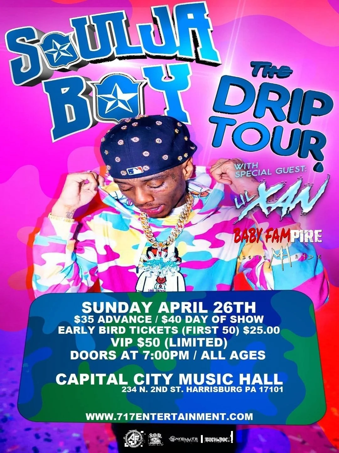 Soulja Boy brought his “Drip Tour” To Harrisburg at the still new Capital City Music Hall. The hip hop mogul that brought you “Crank That” has never played in the Capital City before, though he did pack in Lovedrafts in Mechanicsburg two years ago.